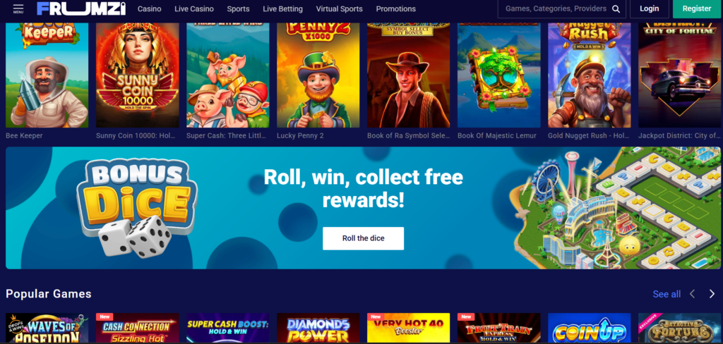 Frumzi Casino überzeugt mit seinem schnellen Einstiegssystem, der breiten Spielauswahl und lukrativen Boni 🎉💎.