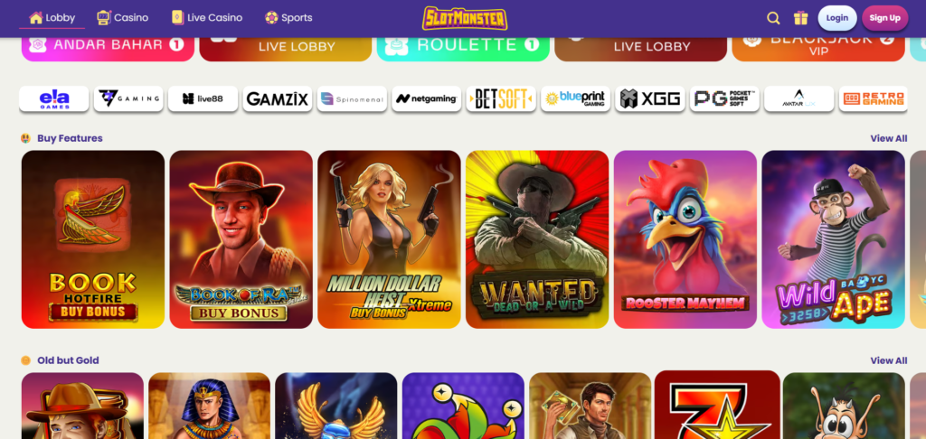 SlotMonster Casino enttäuscht nicht, wenn es um Spielvielfalt geht. Mit einer sorgfältig kuratierten Auswahl von Top-Anbietern wie NetEnt, Pragmatic Play, Play’n GO, Microgaming und Yggdrasil erwartet Sie ein hochwertiges Spielerlebnis. 🚀